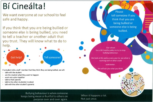 This policy fully complies with the requirements of Bí Cineálta: Procedures to Prevent and Address Bullying Behaviour for Primary and Post-Primary Schools 2024.